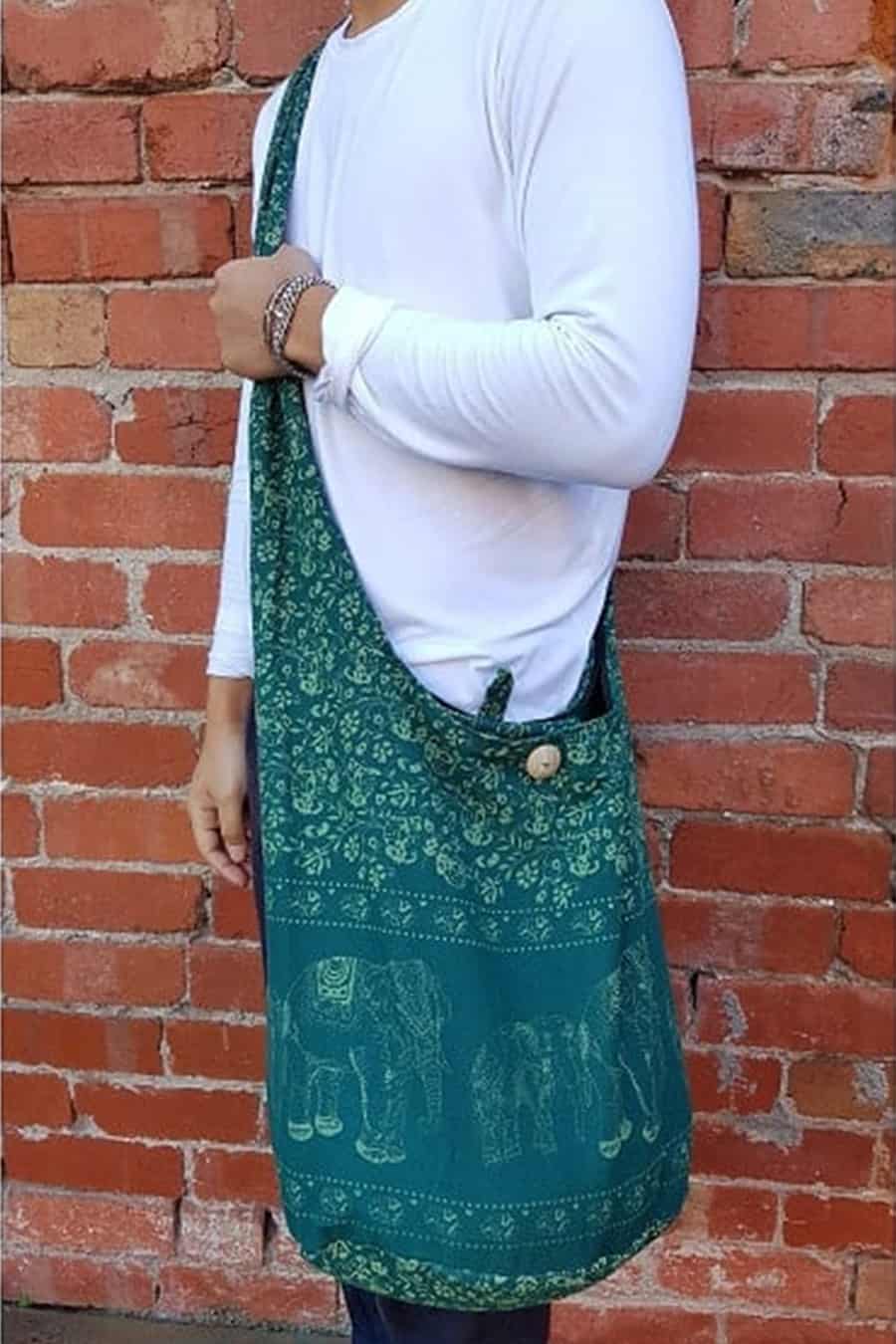 These bags are a great looking carry-all style made from light cotton, it features a zip closed internal pocket and a zip close for the main bag itself. There is also a wooden button closure as well! The style is similar to what Gandhi carried on his famous salt march.