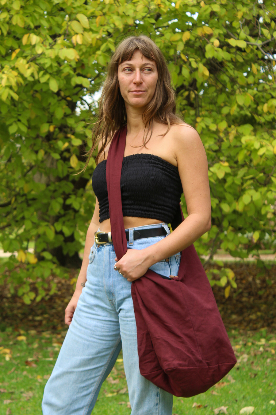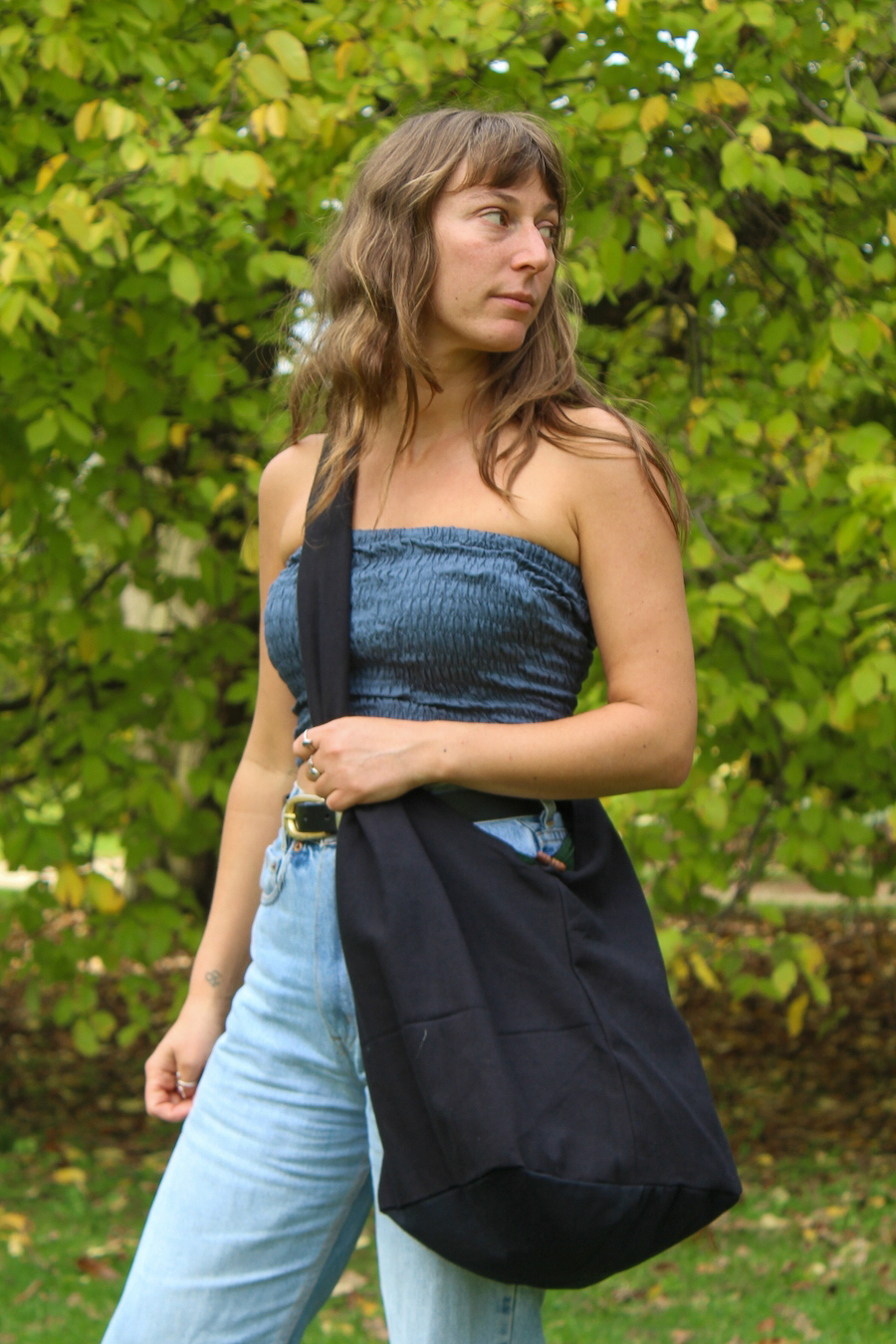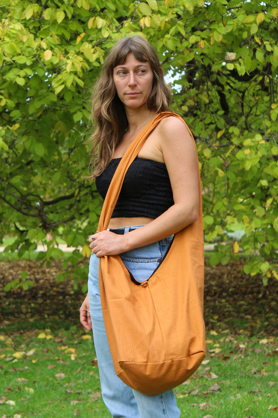 These bags are a great looking carry-all style made from heavy cotton and lined on the inside with 2 internal zip pockets. The bag features a wooden button closure. The style is similar to what Gandhi carried on his famous salt march.