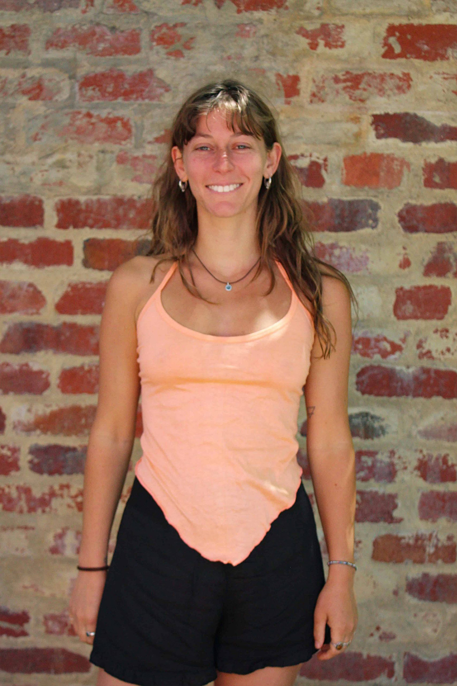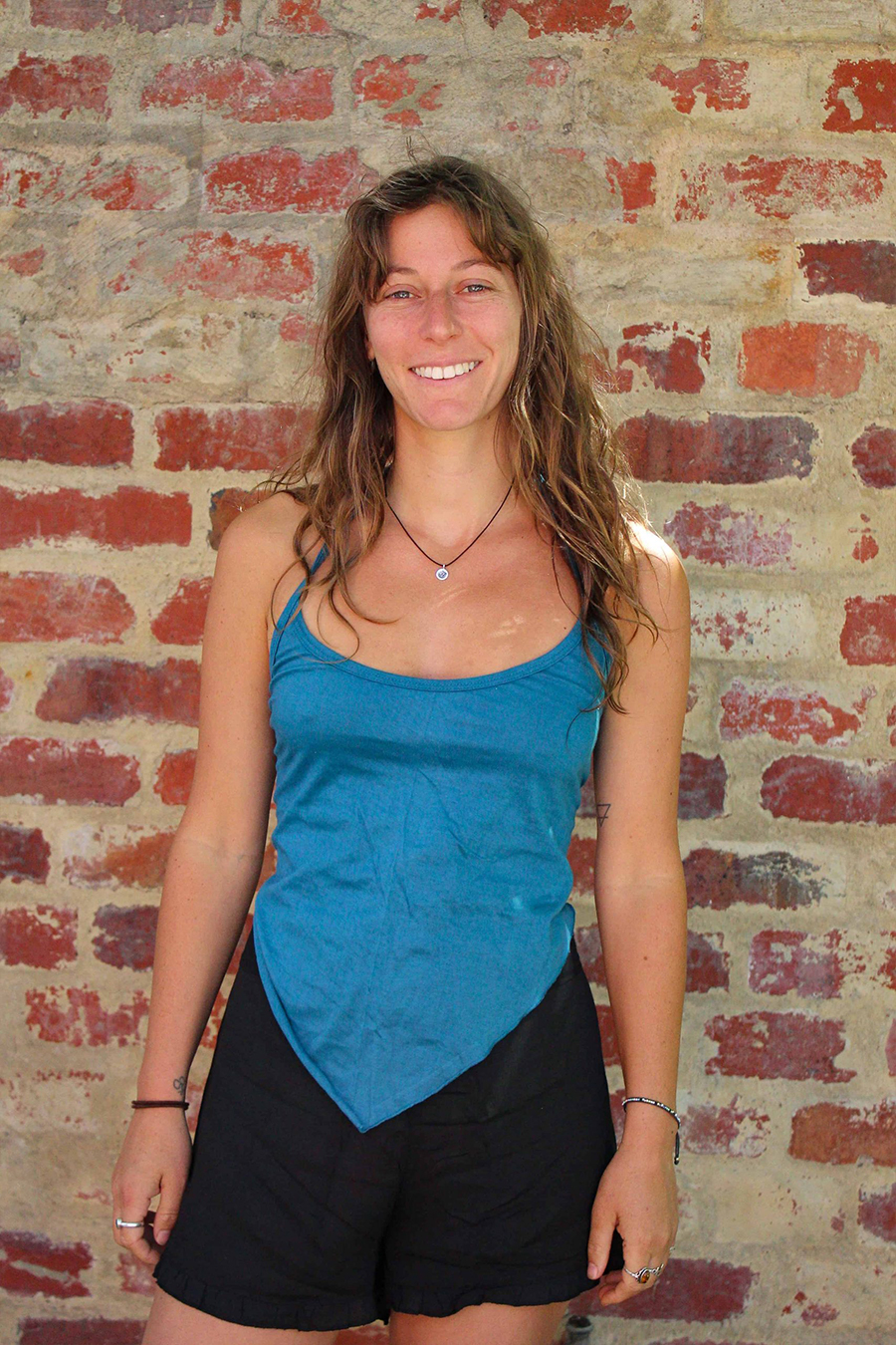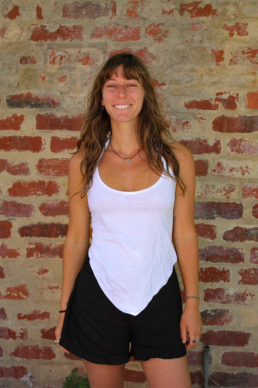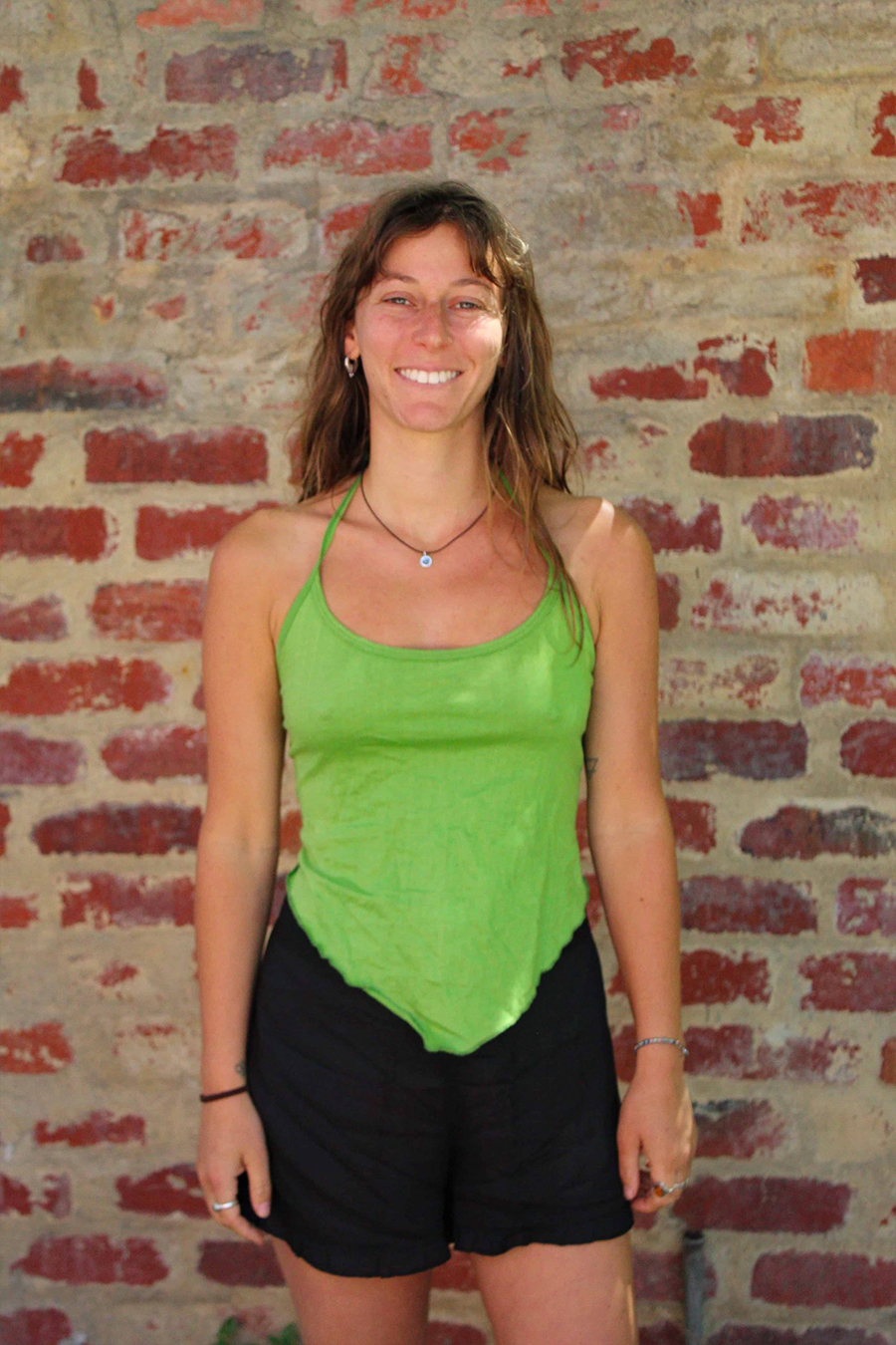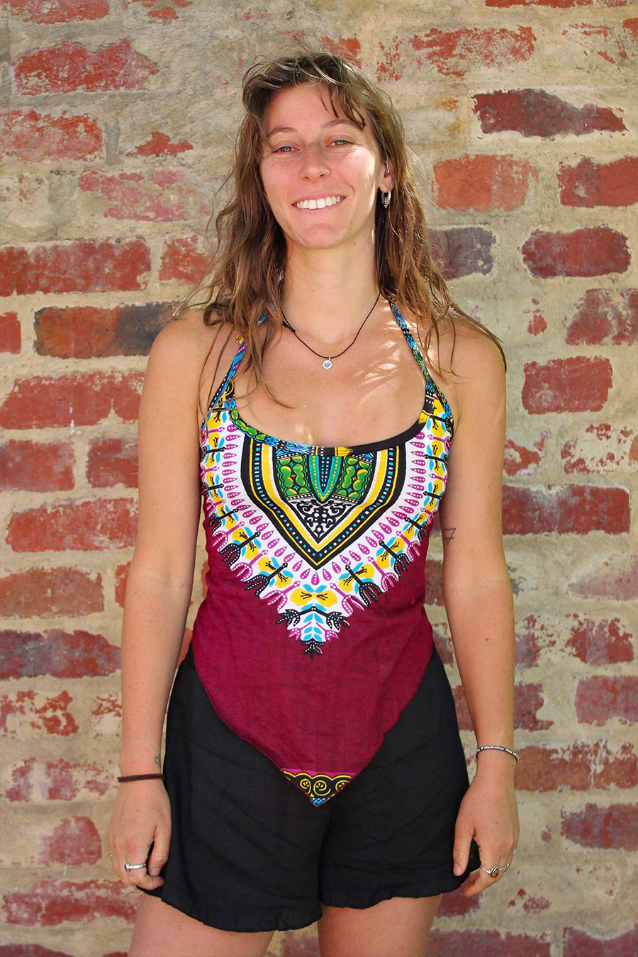 100% cotton singlets with adjustable criss-cross back and halterneck tie-up.