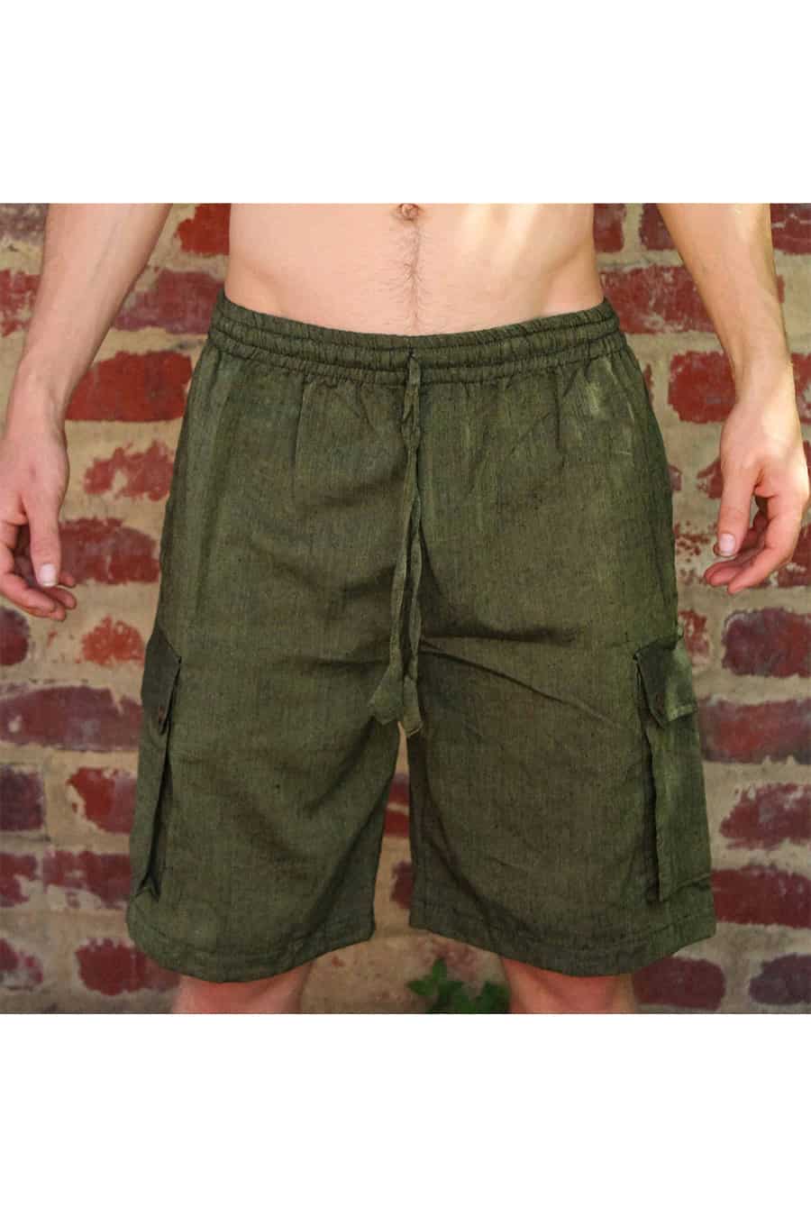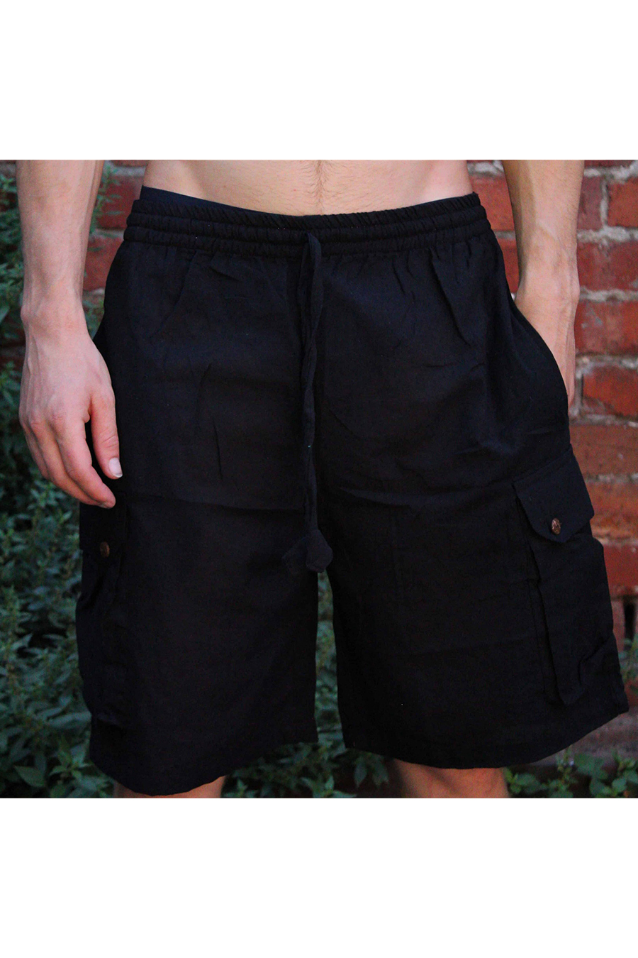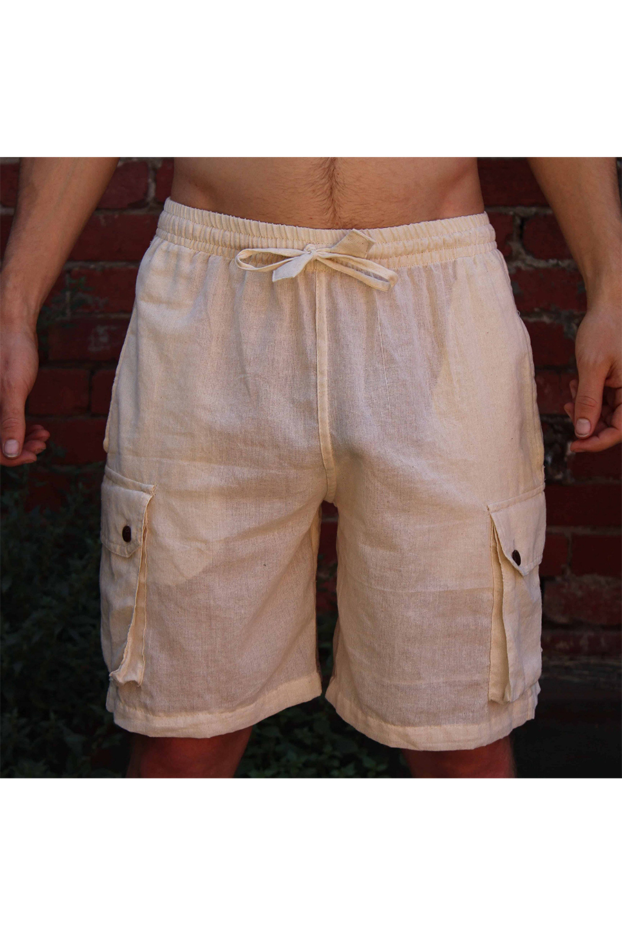 Plain, lightweight cotton shorts with side pockets and box pockets on legs.