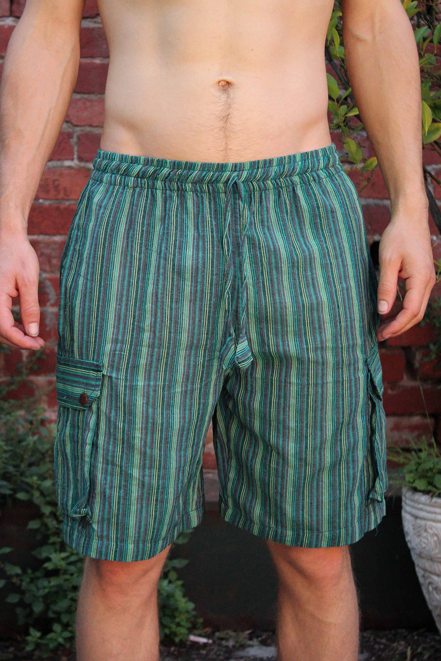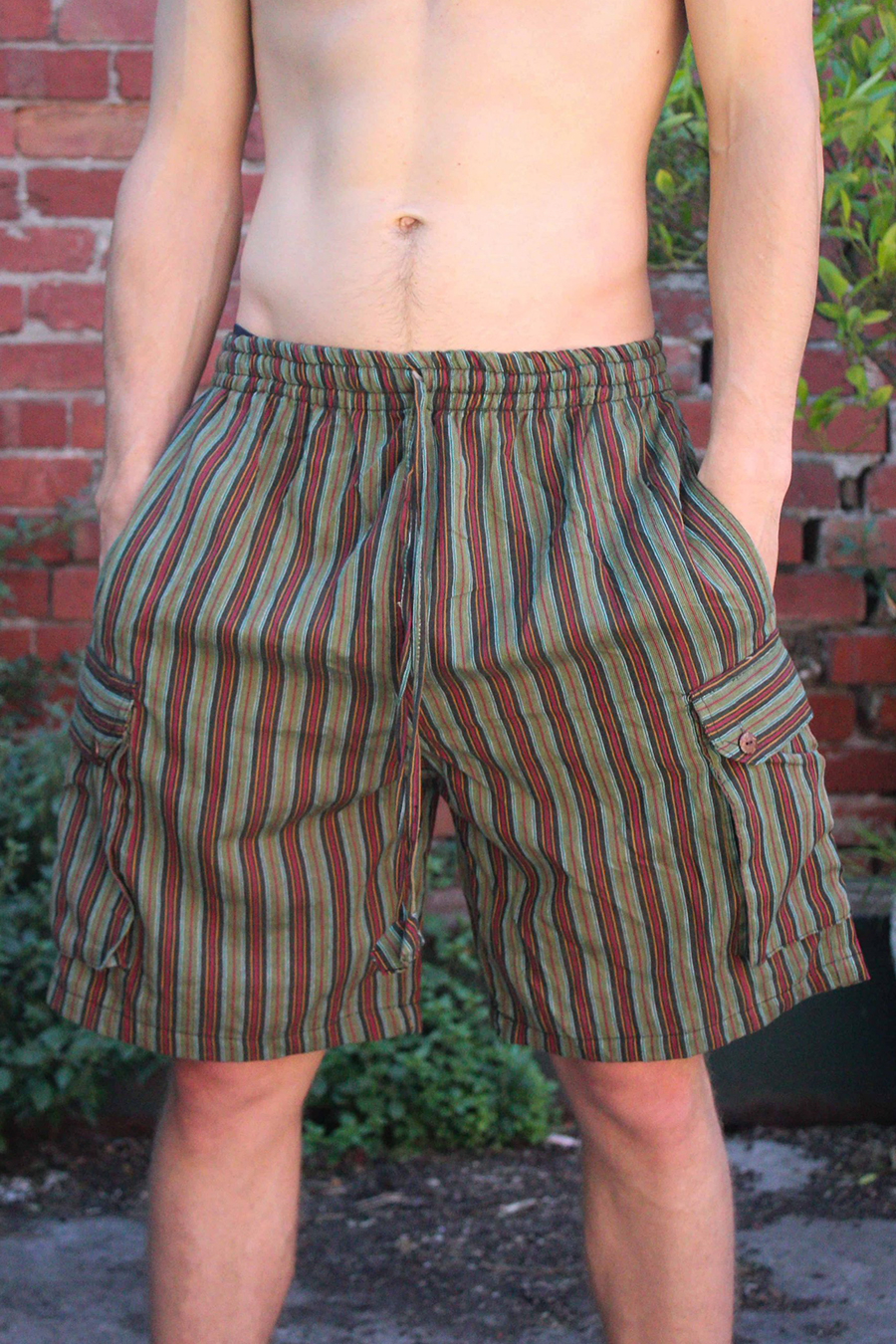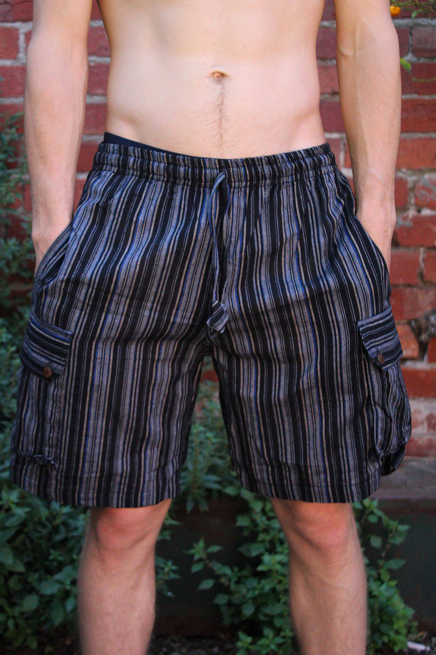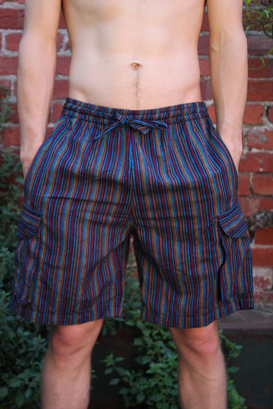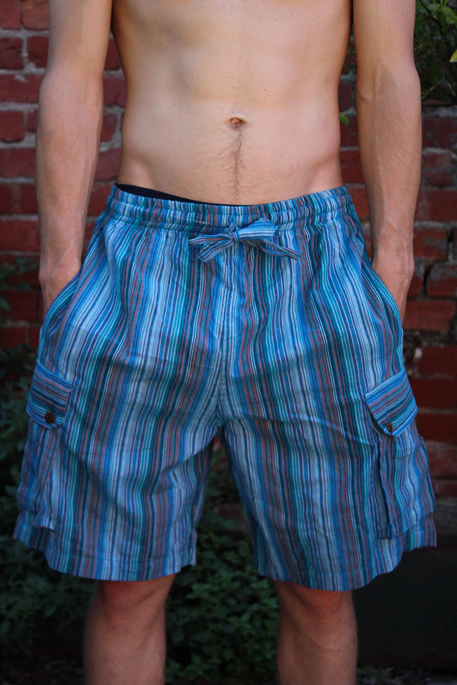 100% lightweight cotton shorts in striped colours. Loose-fitting and comfortable.